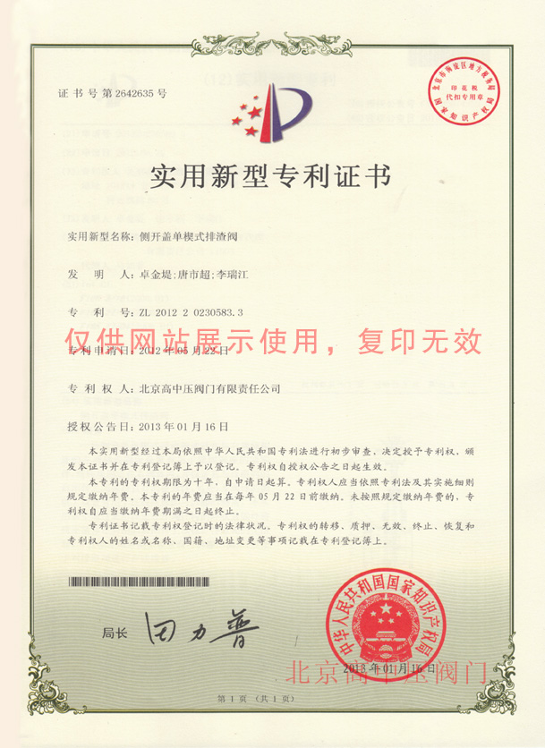 北京高中壓閥門有限責任公司自行研發的排渣閥,實用新型專利,適用于公稱壓力PN1.6~6.4MPa,工作溫度0~1200℃的泥漿、顆粒介質排放系統管路上。單楔式排渣閥是我公司按照工況及工作環境實際經驗研制的不存渣、啟閉靈活、不卡阻的分割塊楔式排渣閥,我公司擁有全新的自主產權。